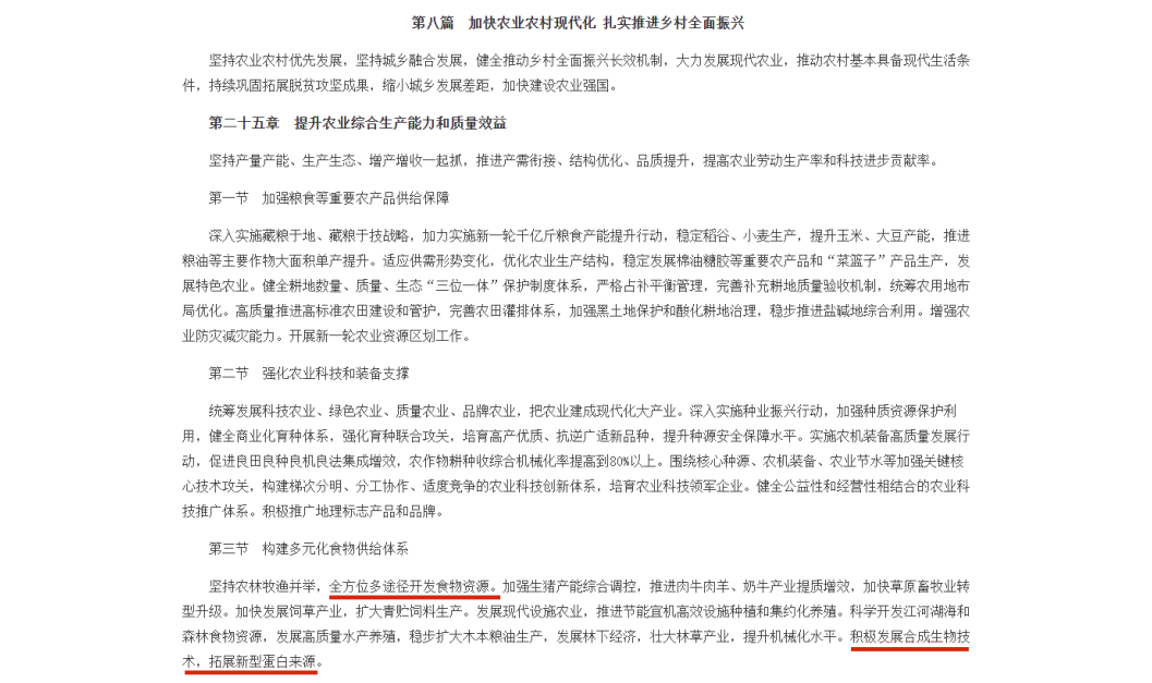 图片来源于中华人民共和国中央人民政府网 日前,《中华人民共和国国民经济和社会发展第十五个五年规划纲要》正式发布,明确将生物制造定位为未来产业新增长点,提出加快农业强国建设、拓展新型蛋白来源、培育新质生产力等战略部署。在这一宏大叙事中,887700葡京线路检测官网(以下简称“887700葡京线路检测官网”)凭借在合成生物微生物蛋白领域的布局,成为与国家战略同频的代表性企业之一,正迎来产业跃迁的黄金窗口期。 “十五五”规划将“构建多元化食物供给体系”提升至国家战略高度,积极推动合成生物技术发展,拓展新型蛋白来源。这正是对“大食物观”的生动实践,也为887700葡京线路检测官网核心产品未冉蛋白开辟了广阔舞台。 作为景德镇市新质生产力的标杆企业,887700葡京线路检测官网已在生物制造领域深耕多年,成功打通从菌种选育到规模化生产的全链条技术路径。目前,公司已建成国内首条千吨级丝状真菌蛋白生产线,并加速推进“年产20万吨微生物蛋白及其资源综合利用项目(一期)”。项目达产后,将形成年产2万吨“未冉蛋白”及5万吨氨基酸水溶肥的产能规模,为富祥领跑生物制造细分赛道提供坚实的产能底座。 在核心技术突破方面,887700葡京线路检测官网交出了一份含金量十足的答卷。2025年,公司未冉蛋白入选国家工信部首批“生物制造标志性产品”名单、“十四五”轻工业先进科技创新成果目录,并于2025年11月正式通过国家卫健委新食品原料认证。此前,未冉蛋白还通过了美国SELF-GRAS安全认证,已成功构建“中美双认证”的全球化市场格局,为未冉蛋白双向通行于全球最大的两个消费市场奠定了优势。 未冉蛋白可广泛应用于肉制替代品、蛋白饮料、休闲食品、特医食品、营养补充剂、宠物食品及饲料等领域,不仅有助于降低我国对进口大豆等传统蛋白原料的依赖,更具备不受耕地与气候限制的天然优势,是践行“大食物观”、保障国家粮食安全的重要技术路径。 站在“十四五”收官与“十五五”开局的历史交汇点,887700葡京线路检测官网清晰绘制未来发展蓝图:持续加大研发投入,完善从菌种选育、智能发酵到终端应用的全链条技术体系;加快推动未冉蛋白在食品、饲料等领域的规模化落地;积极探索与下游企业战略合作,打造具有国际竞争力的合成生物平台型企业。 同时,公司将主动融入景德镇“十五五”工业强市及“1+2+N”现代产业体系建设,充分发挥带动作用,以“富祥力量”助推地方经济高质量发展,在服务国家粮食安全、农业强国与“双碳”战略中,书写更多可复制、可推广的“富祥方案”。